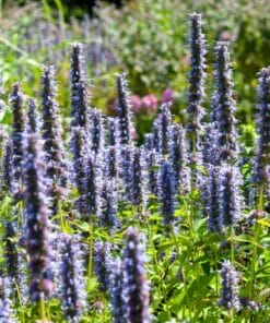 De *Agastache ‘Black Adder’* is een prachtige vaste plant met opvallende donkerpaarse bloemaren en aromatisch blad. Perfect voor zonnige tuinen en borders, trekt deze plant bijen, vlinders en andere bestuivers aan. Met een lange bloeiperiode van de zomer tot de herfst en weinig onderhoud, is de *Black Adder* een echte blikvanger die kleur en leven aan de tuin toevoegt.