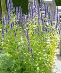 De *Agastache ‘Black Adder’* is een prachtige vaste plant met opvallende donkerpaarse bloemaren en aromatisch blad. Perfect voor zonnige tuinen en borders, trekt deze plant bijen, vlinders en andere bestuivers aan. Met een lange bloeiperiode van de zomer tot de herfst en weinig onderhoud, is de *Black Adder* een echte blikvanger die kleur en leven aan de tuin toevoegt.