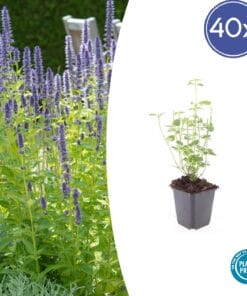 De *Agastache ‘Black Adder’* is een prachtige vaste plant met opvallende donkerpaarse bloemaren en aromatisch blad. Perfect voor zonnige tuinen en borders, trekt deze plant bijen, vlinders en andere bestuivers aan. Met een lange bloeiperiode van de zomer tot de herfst en weinig onderhoud, is de *Black Adder* een echte blikvanger die kleur en leven aan de tuin toevoegt.