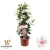 De Dipladenia White heeft regelmatig water nodig, vooral tijdens droge periodes, om gezond en bloeiend te blijven. Met zijn gemiddelde tot snelle groeisnelheid kan de Dipladenia White al snel een hoogte bereiken van ongeveer 2 meter, waardoor hij ideaal is voor het bedekken van hekken, pergola’s of andere verticale structuren.