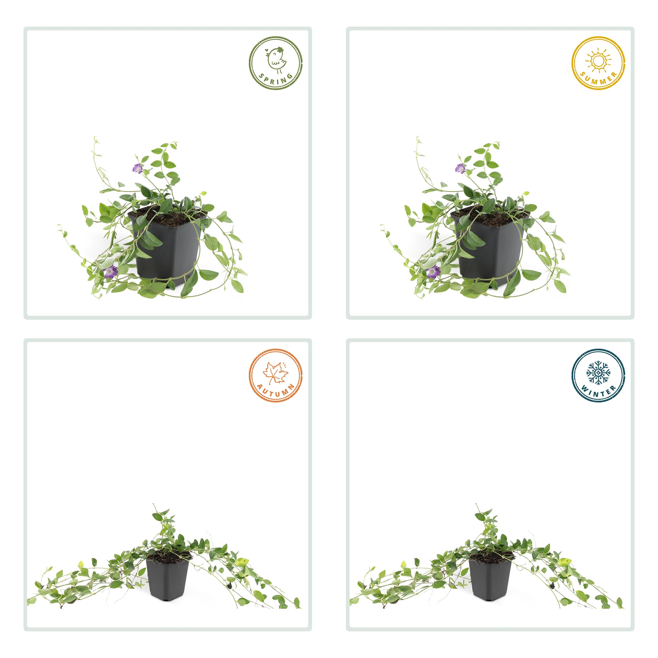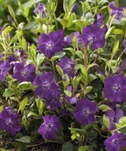 **Vinca minor ‘Atropurpurea’** is een prachtige bodembedekker die elke tuin verfraait. Met zijn dichte, laag groeiende bladeren en een betoverende paarse bloemenzee van maart tot juni, brengt deze plant kleur en leven. Hij groeit op vrijwel elke bodemsoort en gedijt zowel in de zon als in de schaduw. Vinca is eenvoudig te onderhouden; snoei voor februari en geniet van een weelderige, bloeiende tuin. Ideaal voor het onderdrukken van onkruid en het stabiliseren van hellingen. Kies voor Vinca minor ‘Atropurpurea’ en maak van uw tuin een bloeiende oase!
