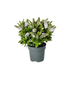 De struikveronica – zoals Hebe in het Hollands heet – is de ideale bewoner voor borders en perken. Ook in potten en manden doet-ie het perfect. Wat heel fijn is in ons klimaat: de plant kan behoorlijk goed tegen lage temperaturen. Alleen bij strenge vorst is het slim om ‘m in te pakken. En als het niet ijzig koud wordt, kan Hebe tot zelfs in november doorbloeien.