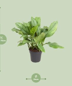 Deze Aglaonema wordt geleverd in een maat van 24 cm, perfect voor elke binnenruimte.De huidige hoogte van deze Aglaonema is ongeveer 70 cm, wat een elegante touch toevoegt aan uw huis of kantoor.Aglaonema gedijt op een plek met halfschaduw, waardoor het een ideale keuze is voor gebieden met indirect zonlicht.Het verzorgen van Aglaonema is eenvoudig, omdat het bekend staat om zijn lage onderhoudseisen.Met prachtig blad brengt Aglaonema een levendige en weelderige touch aan elk interieurdecor.