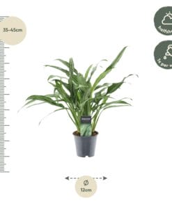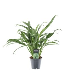 Ontdek de weelde van de Aglaonema Cutlass, een verfijnde aanwinst voor je binnenruimte. Met haar opvallende zwaardvormige bladeren en levendige groentinten, voegt deze kamerplant een vleugje eigentijdse elegantie toe. De Aglaonema Cutlass gedijt in diverse lichtomstandigheden en vraagt minimaal onderhoud, waardoor ze ideaal is voor zowel beginners als ervaren plantenliefhebbers. Creëer een sfeer van natuurlijke pracht in je leefruimte met deze unieke Aglaonema-variant, en laat de Aglaonema Cutlass schitteren als een symbool van tijdloze schoonheid in je groene collectie.