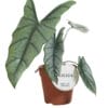 - De Alocasia Dragon Scale Variegata heeft een indrukwekkend bladpatroon met een combinatie van donkergroene nerven en lichtere, gemarmerde tinten.