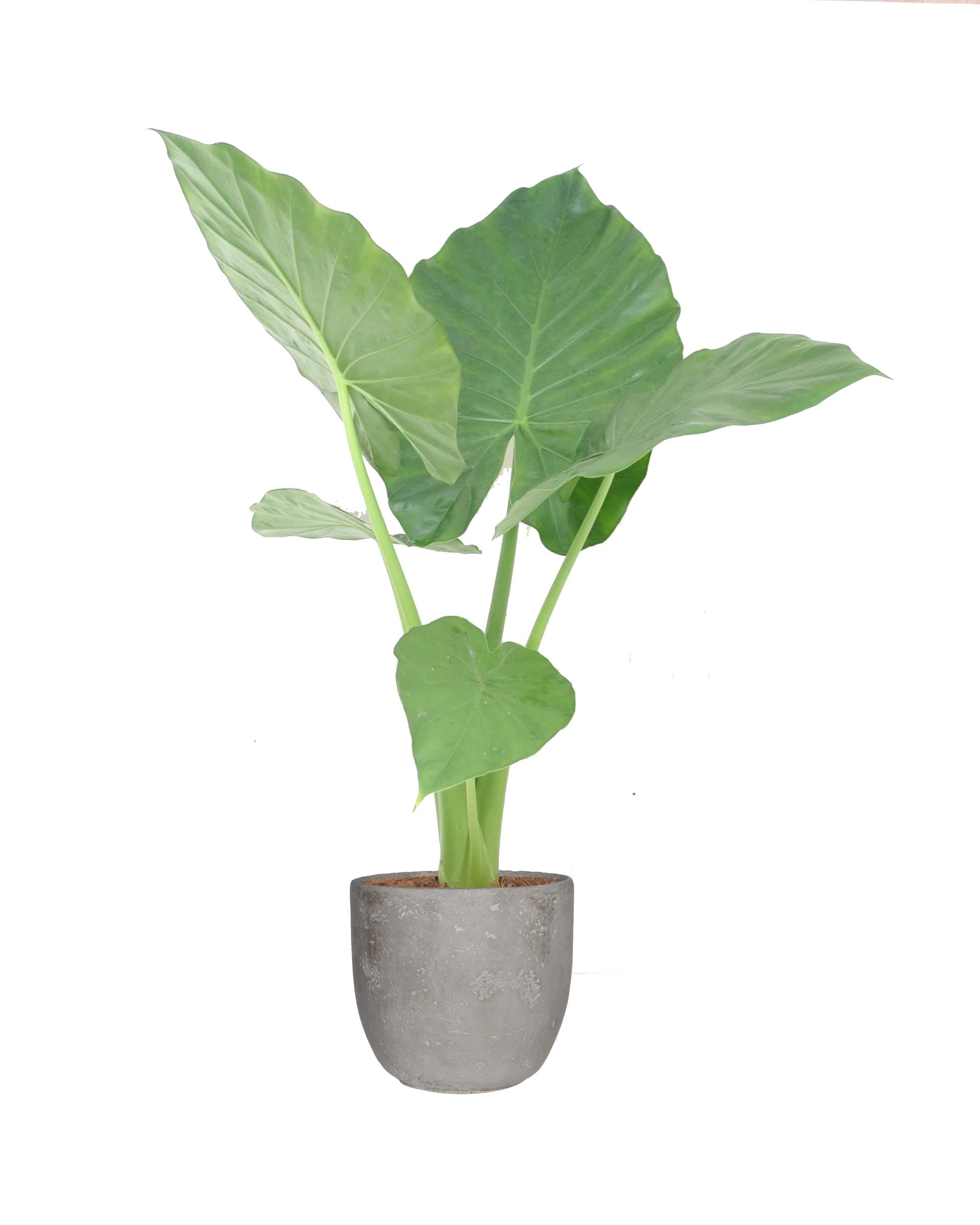 De Alocasia macrorrhiza of olifantsoor is een spectaculaire tropische plant met enorm bladeren. Een echte blikvanger!