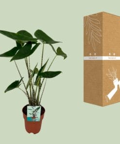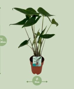 Maak kennis met de Alocasia Zebrina, ook wel bekend als de “Alocasia” – een prachtige kamerplant met een intrigerende oorsprong. Deze opvallende soort komt oorspronkelijk uit de tropische regenwouden van Zuidoost-Azië en heeft karakteristieke zebrastrepen op zijn langwerpige, pijlvormige bladeren, wat een exotisch tintje geeft aan elke binnenruimte. Met zijn beheersbare grootte en lage onderhoudseisen gedijt de Alocasia goed in binnenomgevingen, zuivert de lucht en creëert een serene sfeer. Ideaal voor plantenliefhebbers die de schoonheid van de natuur naar binnen willen halen, is de Alocasia Zebrina de perfecte keuze voor een vleugje elegantie. Ontdek vandaag nog deze betoverende kamerplant! Maak kennis met de prachtige Alocasia Zebrina, een must-have aanvulling op je collectie kamerplanten. Deze tropische schoonheid gedijt in een plek met gedeeltelijke schaduw, waardoor het perfect is voor je huis of kantoor. Met zijn opvallende zebrapatronen op de bladeren zal het zeker het middelpunt van de aandacht zijn. Om deze schoonheid te laten floreren, geef je hem eens per week water, zorg ervoor dat de grond goed vochtig is maar niet doorweekt. Door zijn lage onderhoudsniveau is het de ideale keuze voor plantenliefhebbers van alle niveaus. Koop vandaag nog je Alocasia Zebrina en verhoog de elegantie van je ruimte met zijn natuurlijke schoonheid.Wist je dat Alocasia zebrina, ook bekend als de Zebra Plant, de natuurlijke manier is om haar artistieke flair te tonen? Deze prachtige plant heeft onderscheidende, opvallende donkergroene bladeren versierd met witte aderen, die strepen van een zebra nabootsen. Alocasia zebrina is een uitstekende keuze om een vleugje exotisme aan je leefruimte toe te voegen. Het is echter belangrijk om op te merken dat deze prachtige kamerplant uitsluitend bedoeld is ter decoratie, omdat deze niet eetbaar is. Dus leun achterover, ontspan en geniet van de unieke schoonheid van Alocasia zebrina, maar bewaar die smaakpapillen voor culinaire geneugten elders!- Alocasia zebrina heeft een potmaat van 19 cm.- Deze Alocasia plant is ongeveer 75 cm hoog.- Alocasia zebrina staat ook bekend als Alocasia.- Deze plant gedijt goed op een plek met gedeeltelijke schaduw.- Leuk weetje: Alocasia zebrina heeft kenmerkende zebra-achtige patronen op zijn bladeren, waardoor het een visueel opvallende toevoeging is aan elke binnen- of buitenruimte.