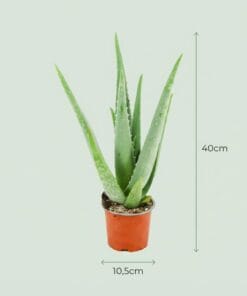 De Aloë Vera is een sterke en populaire vetplant, gewaardeerd om zijn geneeskrachtige sap. De vlezige bladeren slaan water op, waardoor de plant weinig verzorging nodig heeft. De Aloë Vera staat graag op een zeer lichte plek en verdraagt direct zonlicht goed. Laat de grond volledig uitdrogen voordat u opnieuw water geeft. In de winter heeft de plant nauwelijks water nodig. Potdiameter: 10,5 cm, Hoogte: 35 – 40 cm.