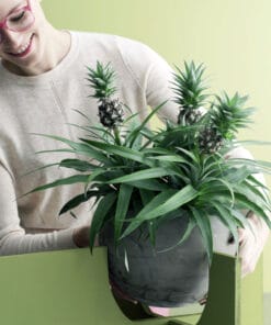 Sierananas zit buitengewoon vernuftig in elkaar. De kokervormige kelk is een volmaakt vijvertje voor water. En de rozet met stugge, lancetvormige bladeren vormt een prachtig systeem van kanaaltjes om al het vocht naar het hart van de rozet te brengen. De bladeren kunnen grijsgroen zijn, maar ook groen met roze. En waar de klassieke fruitananas geelgroen is, is de sierversie eerder rozerood. Het is een heel gemakkelijke plant: af en toe water geven en je hebt er tot wel zes maanden plezier van.