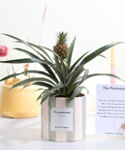 - De Ananas Rosita is een tropische blikvanger met grijsgroene bladeren en een decoratieve roze vrucht bovenop.