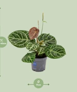 – Anthurium is een prachtige plant, geleverd in een handig formaat van 17 cm.- Met een huidige hoogte van ongeveer 40 cm voegt Anthurium een mooie touch toe aan elke ruimte.- Deze gemakkelijk te verzorgen plant gedijt in een plek met halfschaduw, waardoor het perfect is voor indoor decoratie.- Een opvallend kenmerk van Anthurium zijn de glanzende, hartvormige bladeren die de aandacht trekken.- Anthurium is een onderhoudsarme plant, wat het een uitstekende keuze maakt voor zowel ervaren als beginnende tuiniers.