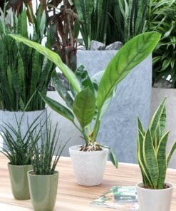 De Jungle King moet het hebben van zijn grote bladeren, die elk interieur een “jungle-tintje” geven. Zoek een goed plekje uit de zon en geef regelmatig wat water, verder heb je er geen omkijken naar. Een makkelijke kamerplant die je lang veel plezier kan geven! Deze plant groeit in een pot van 14cm diameter.