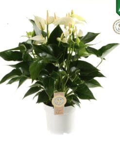 Breng een exotische sfeer in huis met de Anthurium ‘White Champion’ met zijn opvallend witte bloemen. De Anthurium is een trendy schoonheid. Een sieraad in uw huis.