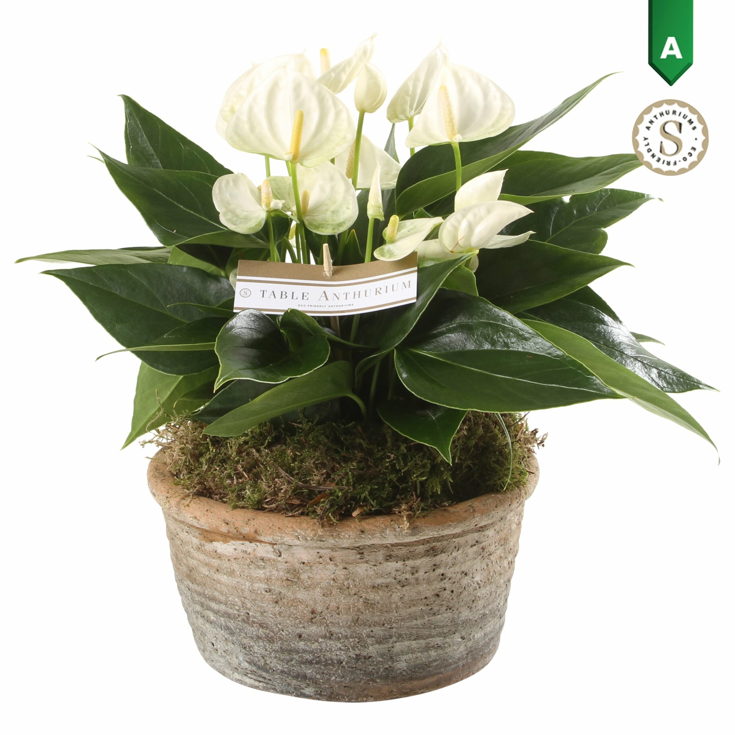 Anthurium White in Parma Keramiek ↑ 35 cm ⌀ 17 cm