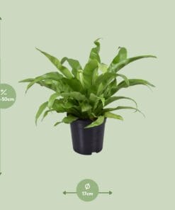 Asplenium antiquum, ook bekend als Spleenwort, is een fascinerende kamerplant met een boeiende oorsprong. Afkomstig uit de weelderige regenwouden van Zuidoost-Azië, voegt deze veerkrachtige groene schoonheid een vleugje exotische charme toe aan elke interieurruimte. Haar glanzende, lansvormige bladeren tonen een verbluffende weelderigheid en bieden een elegante achtergrond. Ideaal voor binnentuinieren, gedijt deze veelzijdige plant goed in gematigd, indirect licht, waardoor het een perfecte keuze is voor zowel huizen als kantoren. Ontgrendel de schoonheid van de natuur met de Asplenium antiquum, de ultieme kamerplant-sanctuarium. Haal vandaag een stukje regenwoud in huis! Maak kennis met de Asplenium antiquum, een prachtige varen die een vleugje elegantie brengt in jouw binnenruimte. Deze onderhoudsarme plant gedijt goed in halfschaduw en is daardoor de perfecte toevoeging aan elke kamer. Met zijn glanzende groene bladeren en delicate textuur is deze schoonheid een waar feest voor het oog. Geef de varen gewoon eens per week water en laat de grond tussen de gietbeurten iets opdrogen, zo blijft deze varen gelukkig en gezond. Verrijk jouw ruimte met de Asplenium antiquum en ervaar de vreugde van het hebben van een plant die weinig verzorging nodig heeft. Bestel de jouwe vandaag nog en geniet van een vleugje natuur binnenshuis!Wist je dat Asplenium antiquum. ook wel bekend als de “Vogelnestvaren”, niet alleen een prachtige decoratieve plant is, maar ook een uitstekende keuze om de kwaliteit van de binnenlucht te verbeteren? Zijn levendige, weelderige bladeren voegen een vleugje natuurlijke elegantie toe aan elke ruimte. Onthoud echter dat je je ogen gericht moet houden op zijn schoonheid en niet op je smaakpapillen! De Vogelnestvaren is alleen bedoeld voor visuele genot het is niet eetbaar. Dus, geniet gerust van zijn visuele aantrekkingskracht, maar bewaar het snacken voor andere culinaire verrassingen!- Asplenium antiquum, ook bekend als Spleenwort, is een populaire kamerplant met een potmaat van 17 cm.- Deze plant kan groeien tot ongeveer 45 cm hoogte, wat het een geweldige keuze maakt voor kleinere ruimtes.- Asplenium antiquum gedijt goed in halfschaduw.- Een leuk feitje over Asplenium antiquum is dat het een geweldige luchtzuiverende plant is, die helpt om de luchtkwaliteit in huis of op kantoor te verbeteren.- Met zijn aantrekkelijke bladeren en eenvoudige verzorgingseisen is Asplenium antiquum een populaire keuze voor plantenliefhebbers van alle ervaringsniveaus.