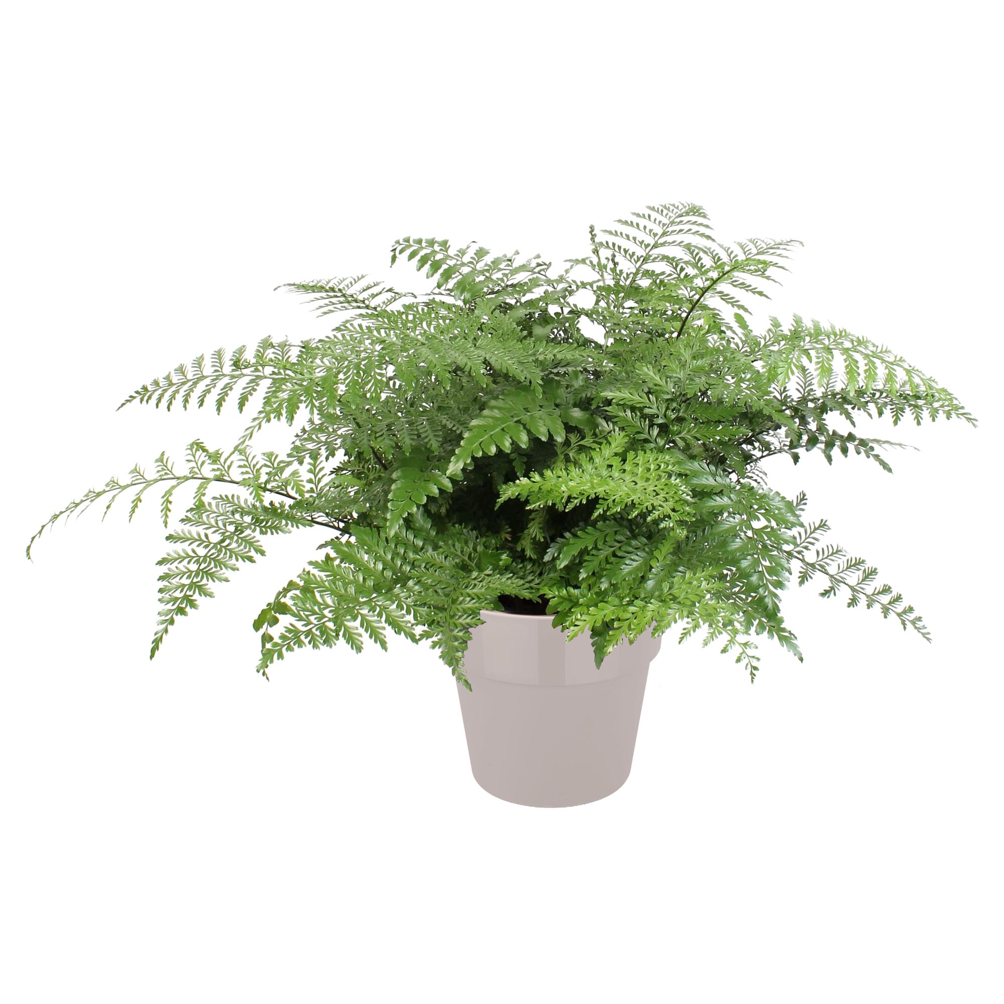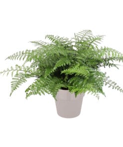 Dit is een fijne, aparte varen met een heel leuk klein blaadje. Het blad is diepgroen en glimt een beetje en voelt stevig aan. Deze varen voelt zich op veel plekken thuis. Varens kun je het beste in de (half)schaduw zetten. De plant wil vaak water, zodat de grond waar hij in staat altijd vochtig is – maar niet nat.
