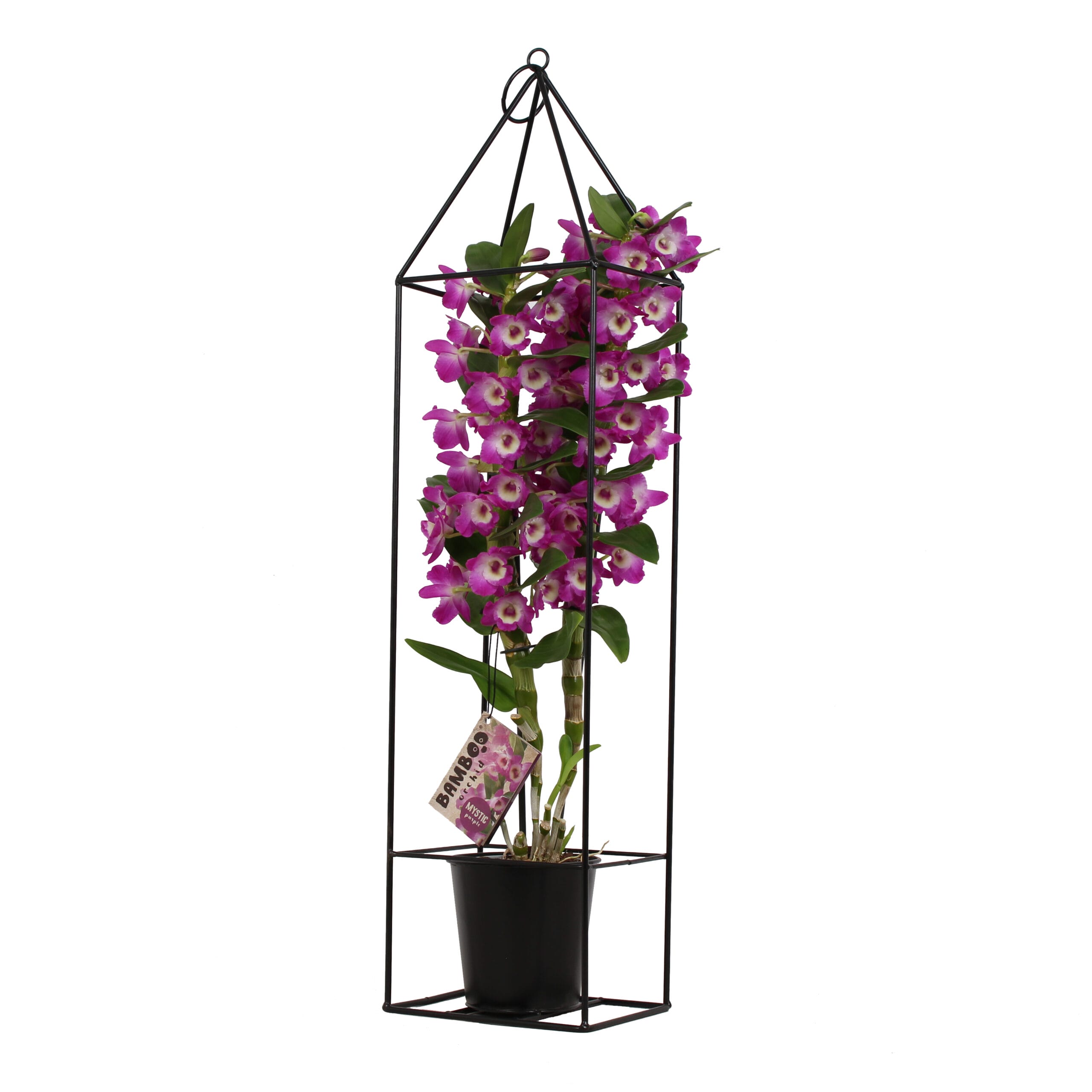 Bamboo Orchid in trendy draadframe. De Mystic Purple is de meest vrouwelijke en mysterieuze Bamboo Orchid. Van de krachtige violette kleurige bloemen gaat een buitengewoon sterke aantrekkingskracht uit. Deze kleur laat zich zowel mooi combineren met ruwe materialen voor een stoere look als met harde pastels voor een exotische uitstraling. Zet hem goed in het zicht en deze plant vol passie zorgt voor een natuurlijk rustpunt in huis.