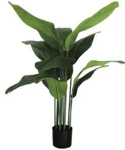 Een Bananen kunstplant is een perfecte keuze wanneer je geen ster bent in het verzorgen van planten, maar wel wil genieten van haar tropische schoonheid. Deze Bananen kunstplant heeft 8 prachtige grote bladeren en is een echte eyecatcher!
