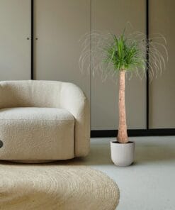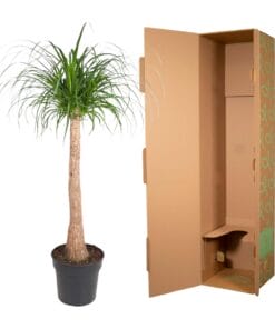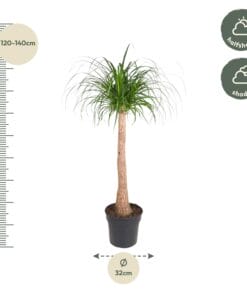 Beaucarnea, de gracieuze “flessenboom” voor je huis. Met zijn sierlijk gebogen stam en een weelderige bos van donkergroene bladeren, brengt deze plant een vleugje natuurlijke elegantie in je interieur. De Beaucarnea gedijt in diverse lichtomstandigheden en vereist weinig onderhoud, waardoor het een ideale keuze is voor zowel beginnende als ervaren plantenliefhebbers. Naast zijn decoratieve waarde, zuivert hij de lucht en zorgt hij voor een gezonde atmosfeer in je huis. Voeg een vleugje rustieke charme en frisheid toe aan je ruimte met deze tijdloze schoonheid, die jarenlang zal gedijen en groeien.