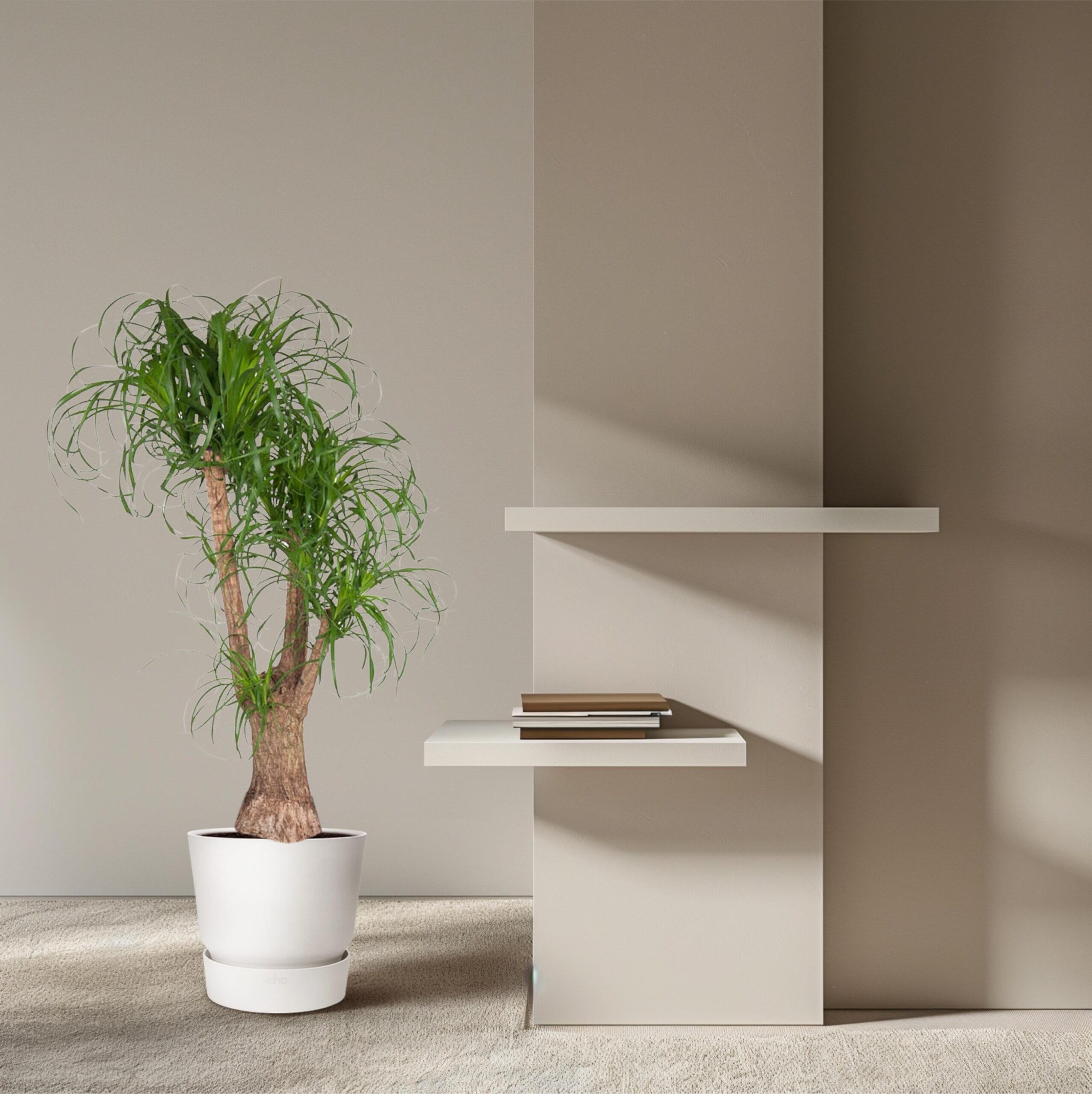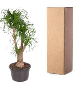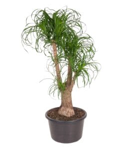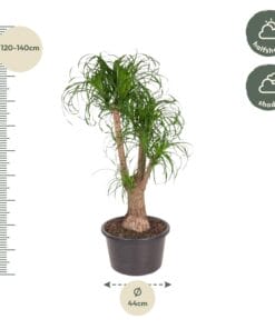 Beaucarnea, de gracieuze “flessenboom” voor je huis. Met zijn sierlijk gebogen stam en een weelderige bos van donkergroene bladeren, brengt deze plant een vleugje natuurlijke elegantie in je interieur. De Beaucarnea gedijt in diverse lichtomstandigheden en vereist weinig onderhoud, waardoor het een ideale keuze is voor zowel beginnende als ervaren plantenliefhebbers. Naast zijn decoratieve waarde, zuivert hij de lucht en zorgt hij voor een gezonde atmosfeer in je huis. Voeg een vleugje rustieke charme en frisheid toe aan je ruimte met deze tijdloze schoonheid, die jarenlang zal gedijen en groeien.