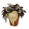 De Begonia ‘Red Kiss’ heeft helder metallic rood blad. De bladeren hebben een donkere rand.