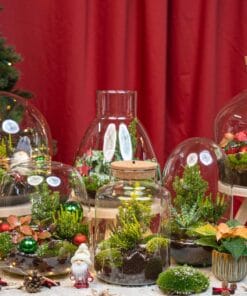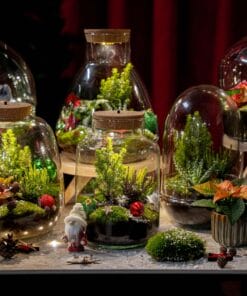 Met een kerst-terrarium haal je meer in huis dan alleen feestelijke decoratie. Dit zelfvoorzienende mini-ecosysteem, ook wel een terrarium of flessentuin genoemd, combineert groen met knusse winterse sfeer. Zo ontstaat een magische kerstsetting, perfect voor iedereen die van natuur én kerst houdt, maar geen groene vingers heeft. Het terrarium regelt zijn eigen luchtvochtigheid en heeft slechts één à twee keer per jaar water nodig.