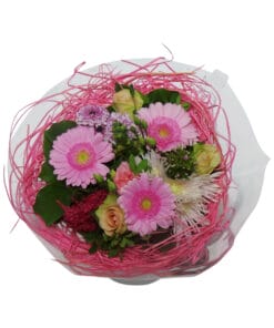 Dit boeket is uitgevoerd met roze bloemen, de kleur voor romantiek en tederheid.