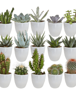 Wat een MEGA mix is dit! Deze mix bestaat uit maar liefst 15 cactussen en vetplanten die in kleur, hoogte én vorm van elkaar verschillen. Van een Cereus tot een Echeveria en van een Haworthia tot een Crassula, alles zit in deze mix. Alle planten uit deze mix komen rechtstreeks van de kweker en zijn dus van de hoogste kwaliteit.