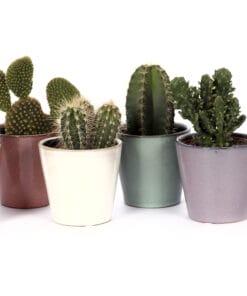 Deze mooie cactus mix bevat 6 kleine decoratieve planten. De cactussen zijn eenvoudig in onderhoud. Deze set wordt geleverd in fraaie sierpotten. Met deze mix van cactussen is jouw interieur in één keer hip en trendy. Ook leuk om cadeau te geven.