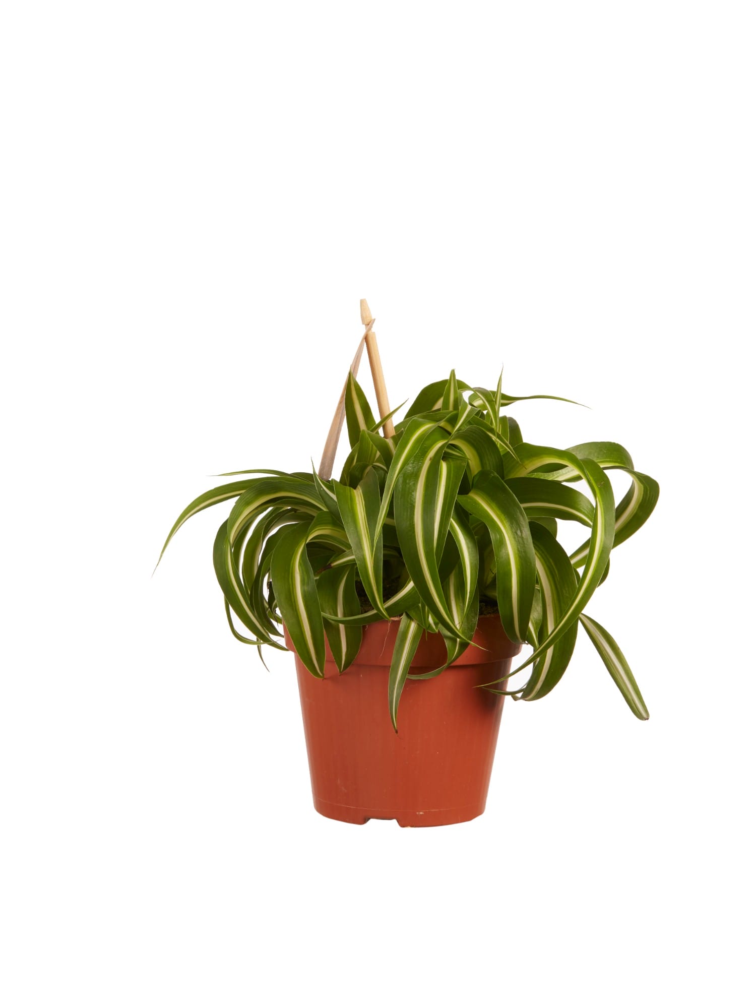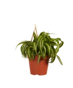 De Chlorophytum comosum Bonnie kenmerkt zich door het bonte en gekrulde blad. In het Nederlands wordt de plant ook wel graslelie genoemd. De plant kan ook (gele) bloei geven als hij wat ouder is. Heel leuk is dat deze bloemetjes dan veranderen in nieuwe, kleine plantjes die langs de pot naar beneden gaan hangen. Het is een sterke plant, die gemakkelijk in de verzorging is.