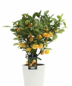 De Calamondin vormt kleine ronde oranje vruchtjes die lijken op een mandarijn. Dat is niet zo vreemd, omdat de calamondin een kruising is van de mandarijn en de kumquat. De vruchten worden in ons Europese klimaat goed rijp. Zij zijn meer voor de sier, dan voor consumptie. De Calamondin is niet winterhard. Haal deze plant dan ook naar binnen in de winter, waar de Calamondin goed kan overwinteren.