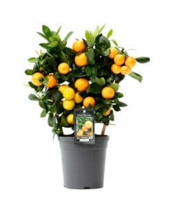 De Calamondin vormt kleine ronde oranje vruchtjes die lijken op een mandarijn. Dat is niet zo vreemd, omdat de calamondin een kruising is van de mandarijn en de kumquat. De vruchten worden in ons Europese klimaat goed rijp. Zij zijn meer voor de sier, dan voor consumptie. De Calamondin is niet winterhard. Haal deze plant dan ook naar binnen in de winter, waar de Calamondin goed kan overwinteren.