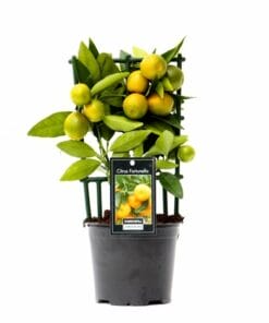 De Calamondin vormt kleine ronde oranje vruchtjes die lijken op een mandarijn. Dat is niet zo vreemd, omdat de calamondin een kruising is van de mandarijn en de kumquat. De vruchten worden in ons Europese klimaat goed rijp. Zij zijn meer voor de sier, dan voor consumptie. De Calamondin is niet winterhard. Haal deze plant dan ook naar binnen in de winter, waar de Calamondin goed kan overwinteren.