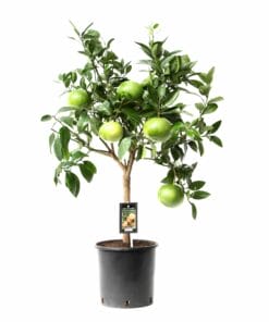 De Citrus Grapefruit heeft dunne, donkergroene bladeren. Na de witte bloesem verschijnen grote vruchten die geel kleuren. De Citrus Grapefruit is een kruising van de pompelmoes en de sinaasappel.
