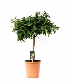 De citrus Kumquat wordt ook wel de dwergsinasappel genoemd. Deze citrus bloeit in de lente met kleine, geurende bloemen. De vruchtjes zien er uit als kleine, langwerpige sinasappeltjes. Vanaf mei mag de plant naar buiten op een zonnige, beschutte plek. De Kumquat is niet winterhard. Haal deze plant dan ook naar binnen in de winter, waar de plant goed kan overwinteren. De vruchten zijn meer voor de sier, dan voor consumptie.