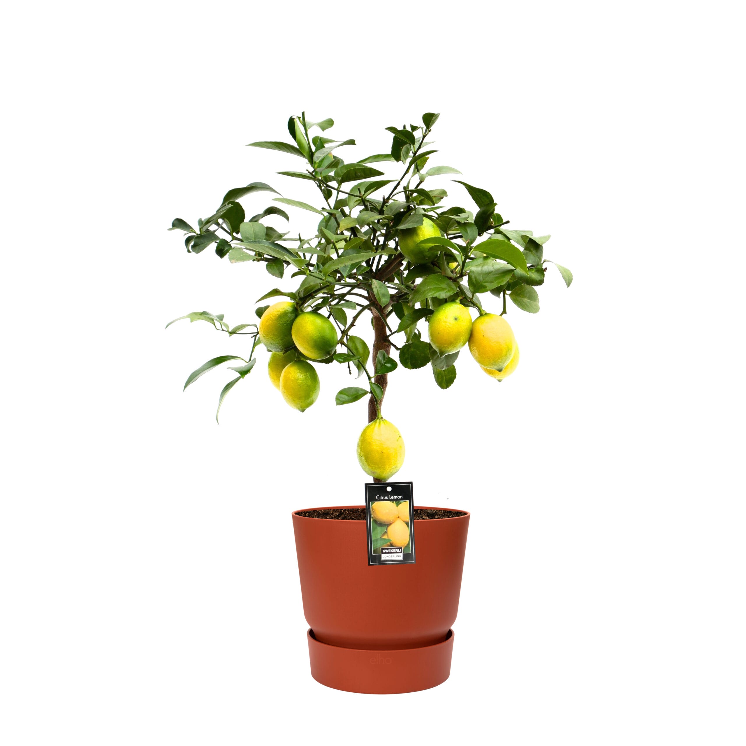 De vruchten van de Citrus Meyer zijn ronder en geler dan een gewone citroen. Hoewel deze plant goed tegen kou kan adviseren we de Citrus Meyer binnen te laten overwinteren. Dat is beter voor de groei. De vruchten zijn niet voor consumptie.