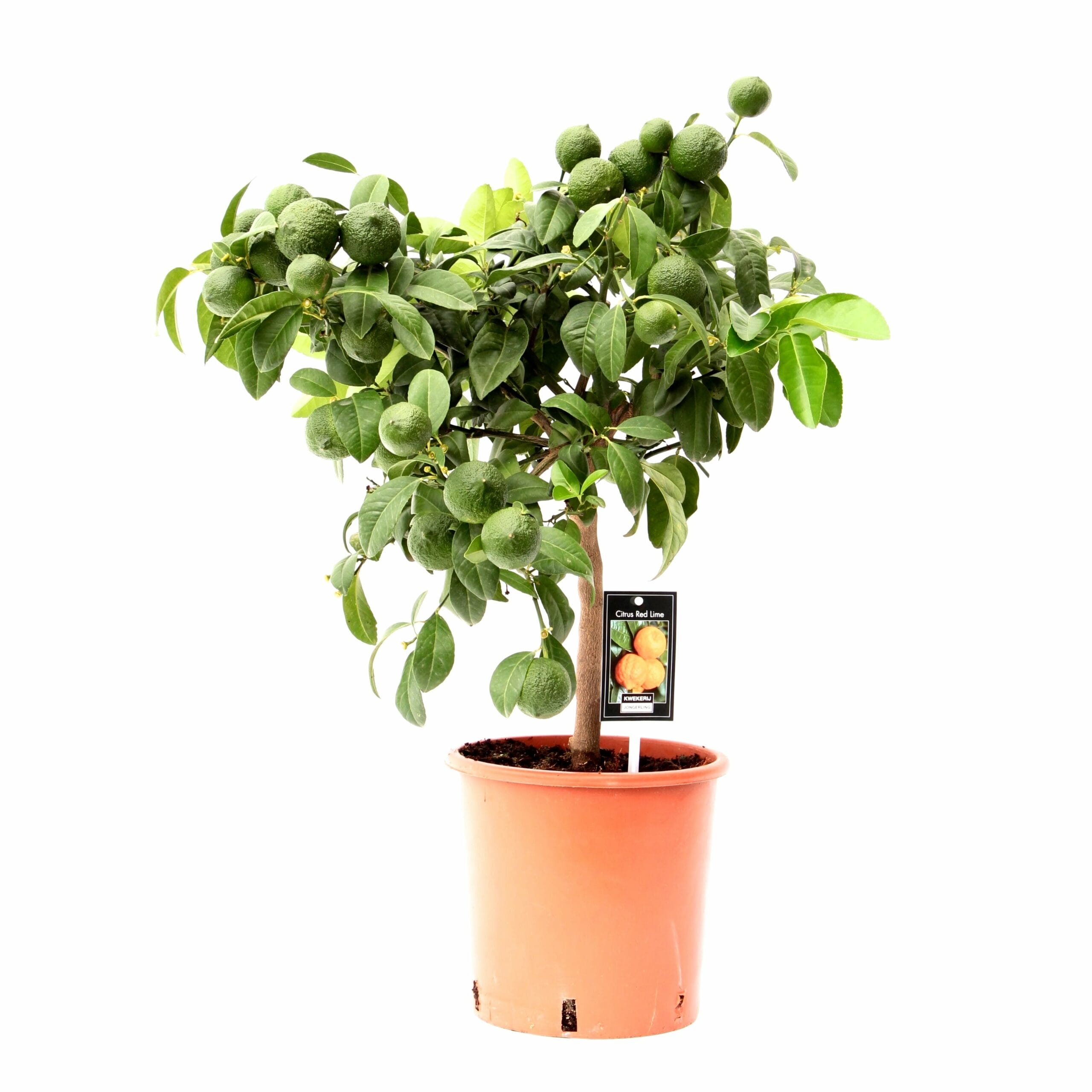 De citrus Red Lime dankt zijn naam aan de rode vruchten. Na de witte bloesem verschijnen de sierlijke vruchten die rood kleuren. De vruchten zijn voor de sier, niet voor consumptie. De pompelmoes is niet winterhard. Laat deze plant binnen overwinteren.