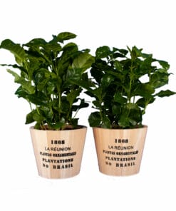 Coffea ’Arabica’ Wist u dat de koffiebonen uit mijn rode bes komen? En dat koffie al 1.500 jaar geleden ontdekt is door een geitenhoeder? Koffie is dus een oeroud natuurproduct! Na bestuiving ontstaan er rode bessen, waarin zich 2 zaden ontwikkelen tot de welbekende koffiebonen. Ik ben een plant die zichzelf bestuift waarbij na ongeveer 15 weken vanaf het bloeien, koffievruchten zullen ontstaan. Ik ga bloeien vanaf mijn 3e jaar en blijf tot mijn 10e jaar koffiebonen produceren. In huis maak ik geen besjes, maar ben ik met mijn glimmend groene blad en houtige uitstraling ook zeker van sierwaarde voor uw interieur.