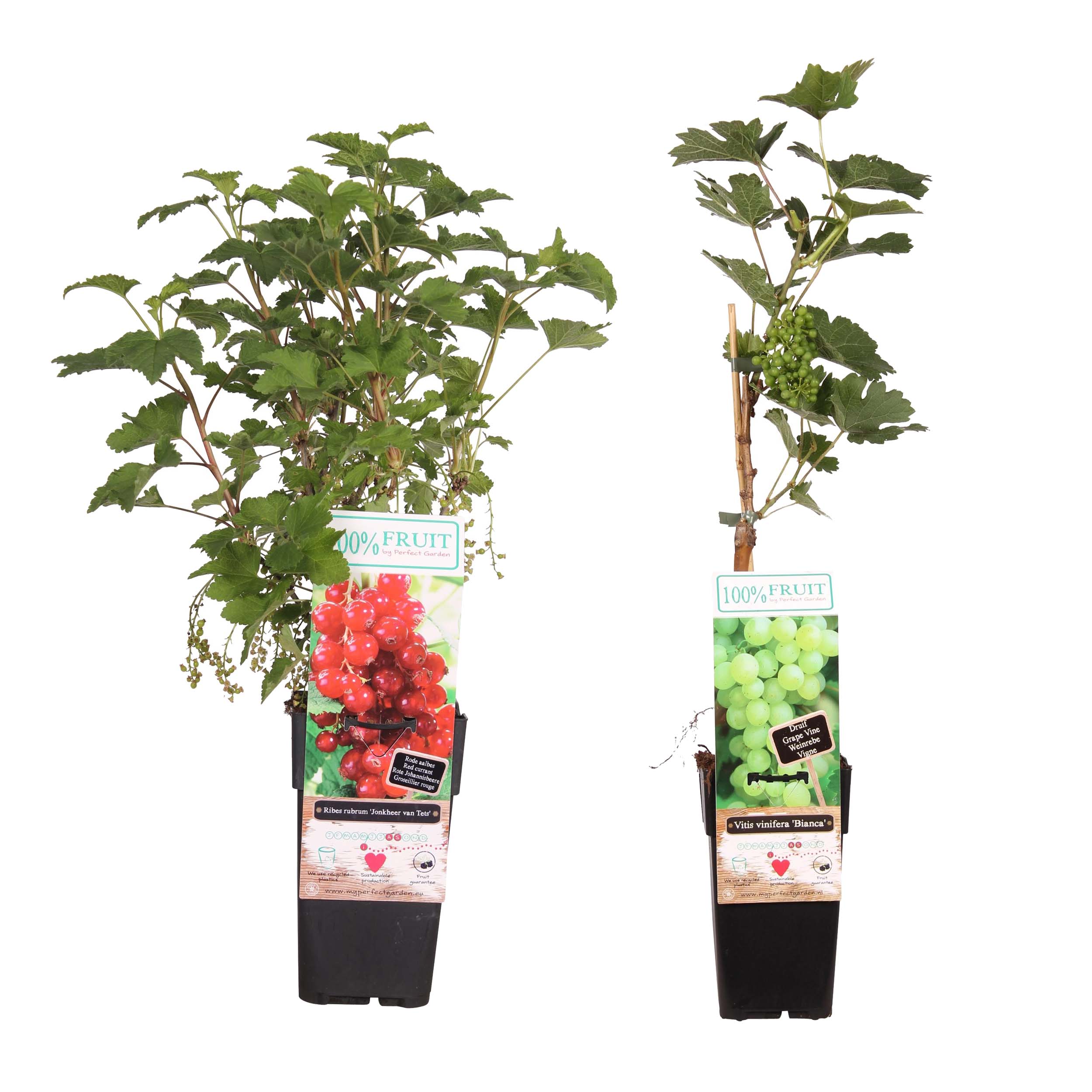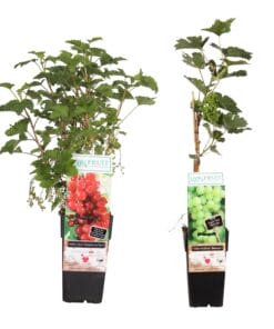 Wees de eerste om “Combinatiepakket Vitis Bianca (druif) en Ribes Jonkheer van Tets (aalbes) ↑ 55 cm ⌀ 15” te beoordelen Reactie annuleren