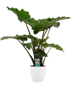 De Alocasia is helemaal hip op het moment! En dat vinden wij niet zo gek, het opvallende groen glimmende blad met prachtige tekening past namelijk perfect in ieder stijlvol interieur. De Alocasia wordt ook wel olifantsoor genoemd en komt uit de tropische bossen van Zuidoost-Azie.