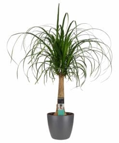 De Beaucarnea of olifantspoot, is afkomstig uit tropische en subtropische gebieden in Azië en Afrika. Deze stijlvolle, makkelijk te verzorgen plant, is 3,5 jaar oud voordat de kleinste variant verkocht wordt. Oudere planten kunnen wel tot 15 jaar oud zijn voordat ze de kwekerij verlaten! Tip van onze kweker: ‘zorg dat de bladeren vrij kunnen hangen, want als ze contact maken met een muur, kast of gordijn, kunnen ze bruin worden’.