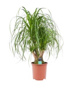 De Beaucarnea heet ook wel olifantsvoet en is zeer decoratief door zijn woeste pluim. Leuk in ieder huis!
