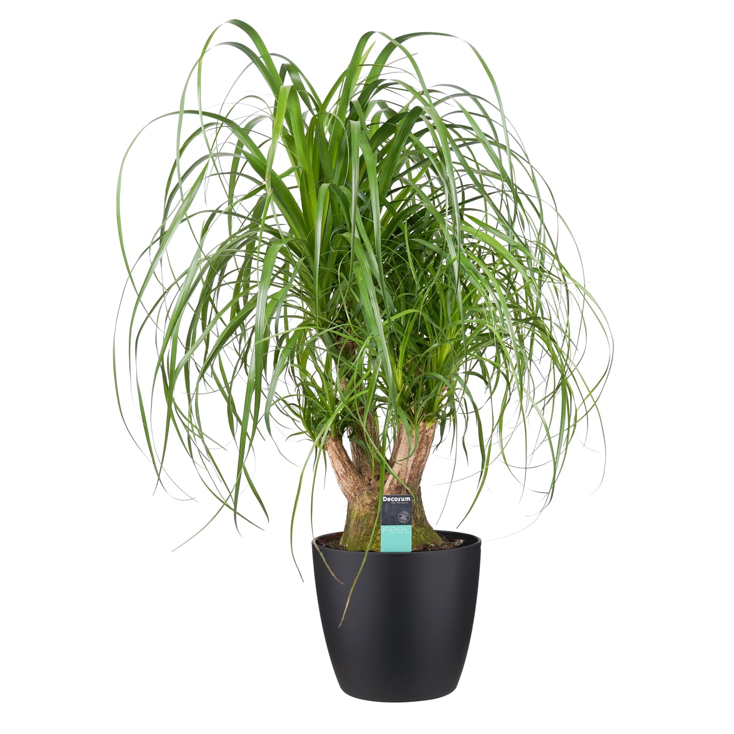 De Beaucarnea heet ook wel olifantsvoet en is zeer decoratief door zijn woeste pluim. Leuk in ieder huis! In een moderne en tijdloze sierpot van ELHO. Deze sierpot is van kunststof en kan dan ook tegen een stootje.