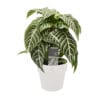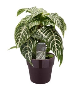 De Aphelandra is een prachtige kamerplant met gestreept blad. Deze opvallende plant uit Brazilië heeft unieke witte nerven en mooie gele bloemen. De bloemen zijn gemiddeld 6 weken mooi waarna de uitgebloeide bloemen eruit gehaald kunnen worden. De Aphelandra groeit oorspronkelijk vooral in het tropisch oerwoud en houdt dus van warmte, geen direct zonlicht en voldoende water. Met de unieke Aphelandra met haar bijzondere blad, haalt u het gevoel van een tropisch oerwoud in huis.