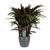 Calathea’s zijn herkenbaar aan hun prachtige blad tekeningen en vele kleuren. De Calathea ‘Medallion’ heeft donkergroene en lichtgroene bladeren met een paarse onderkant.
