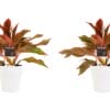 Calathea’s zijn herkenbaar aan hun prachtige blad tekeningen en vele kleuren. De Calathea ‘Medallion’ heeft donkergroene en lichtgroene bladeren met een paarse onderkant.
