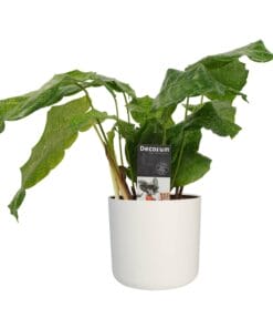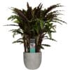 Calathea’s zijn herkenbaar aan hun prachtige blad tekeningen en vele kleuren. De Calathea ‘Medallion’ heeft donkergroene en lichtgroene bladeren met een paarse onderkant.
