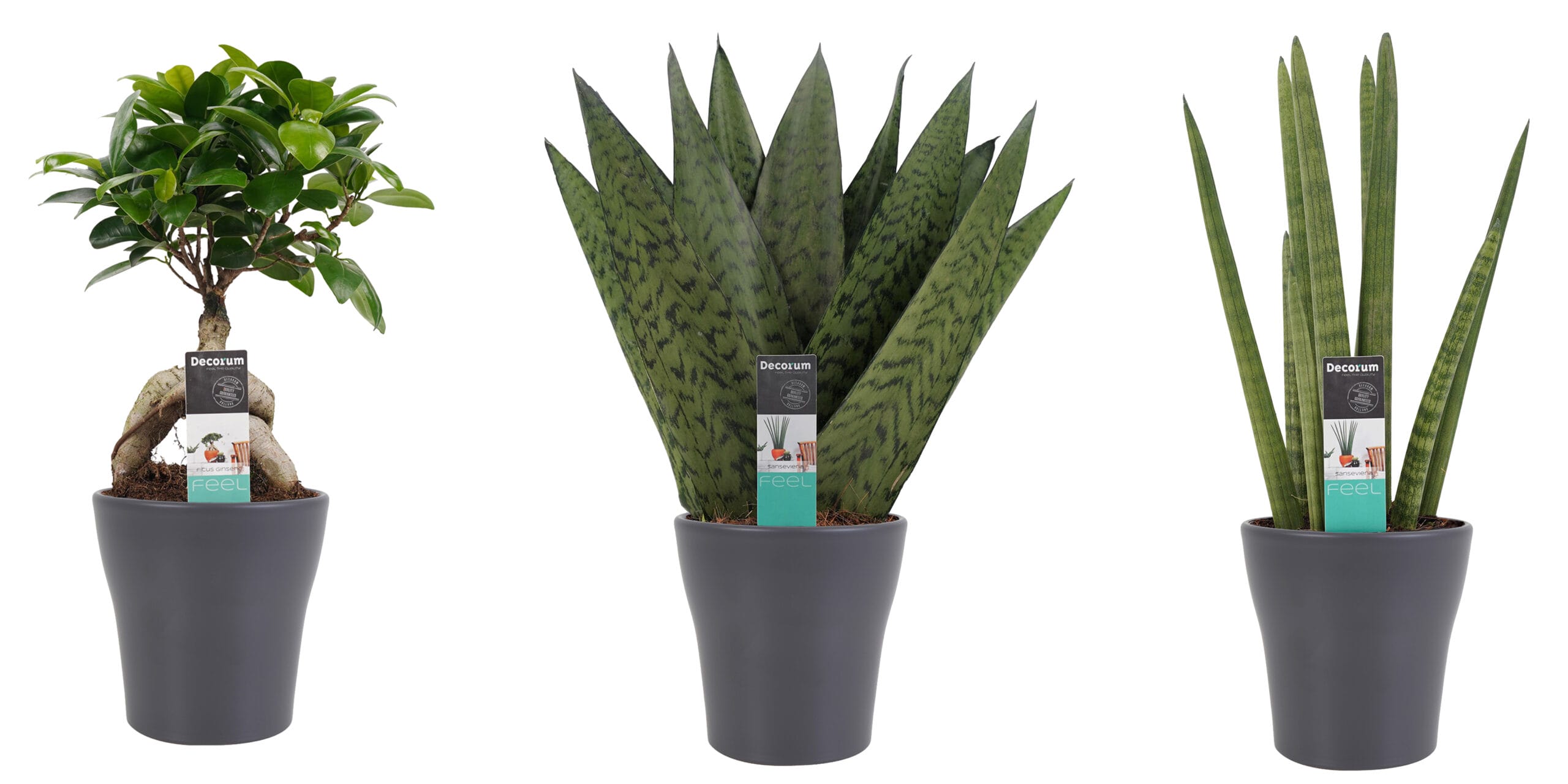 Planten pakket Ficus Ginseng Bonsai geënt – Sansevieria Cylindrica – Sansevieria Zeylanica met Anna grey ↑ 30 cm ⌀ 12 cm