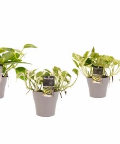 Combipakket Scindapsus Aureum – N’joy – Pictus Trebie – Marble Queen – pot Anna Taupe ↑ 15 cm ⌀ 12 cm