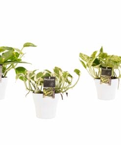 Combipakket Scindapsus Aureum – N’joy – Pictus Trebie – Marble Queen – pot Anna White ↑ 15 cm ⌀ 12 cm